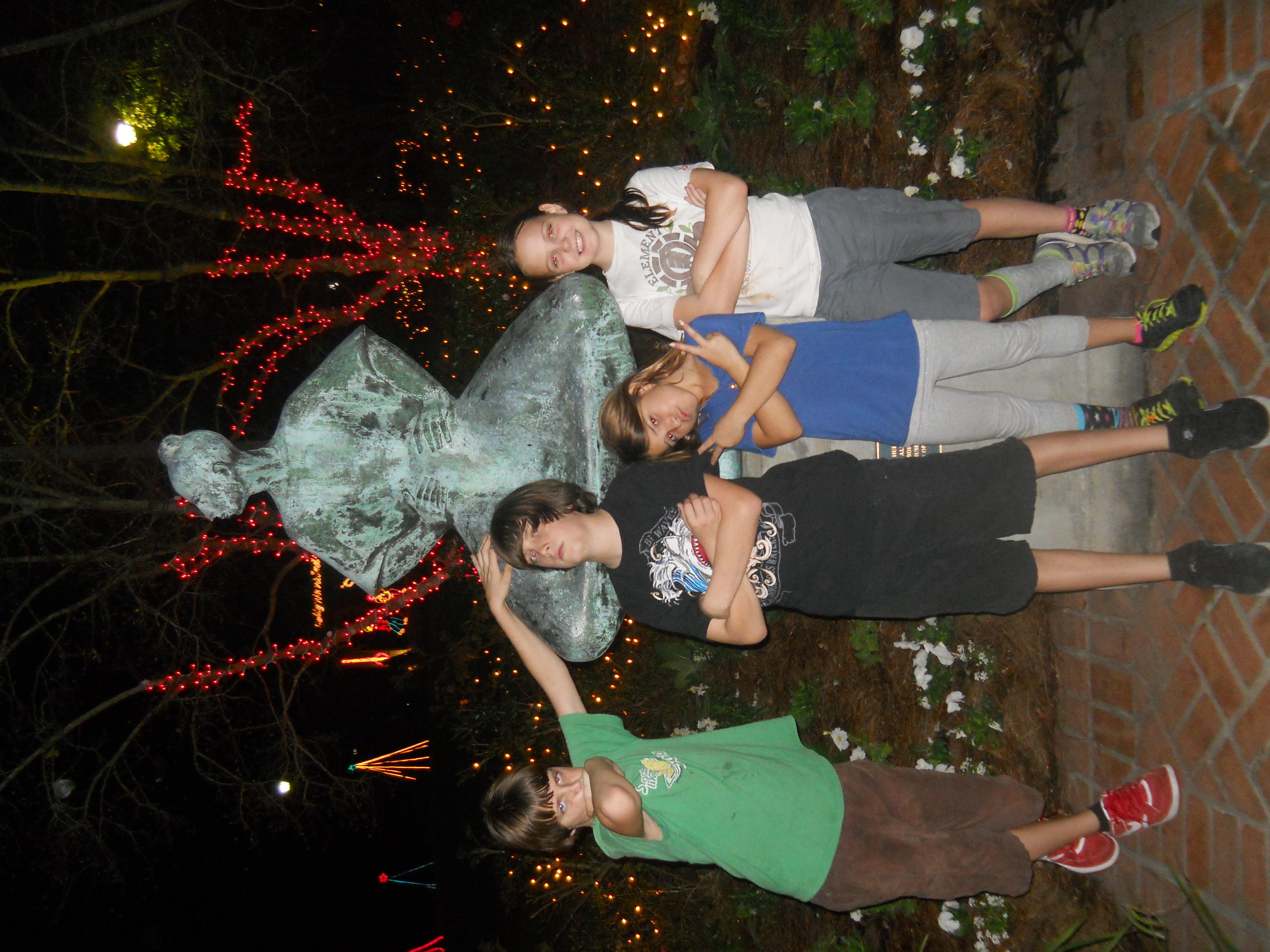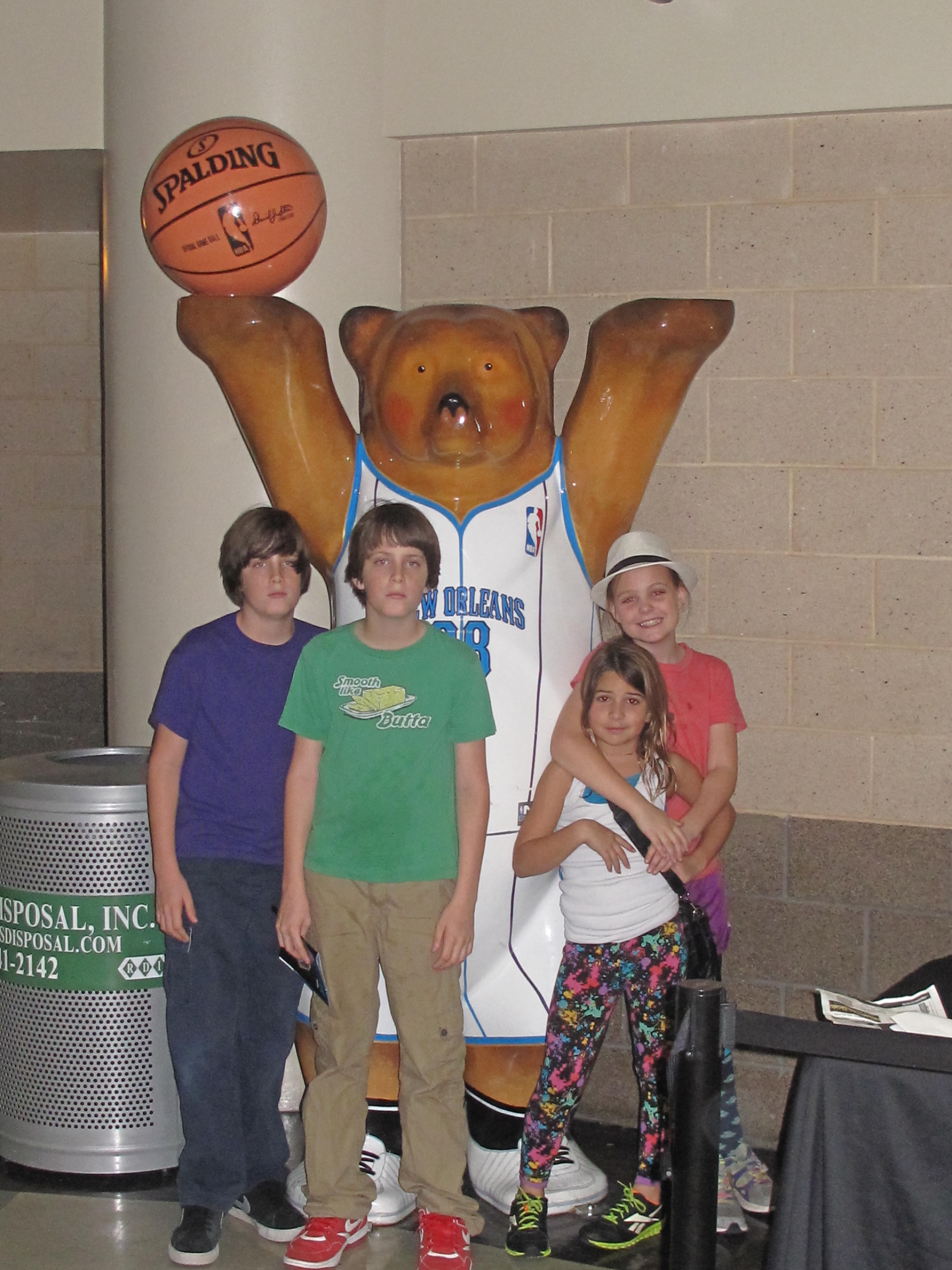 On the weekend of December 8th and 9th, the children and I decided to head to New Orleans. With 3 birthdays in December, the fam thought going on a trip was a lovely birthday present. We packed up the car and grabbed our good friend, Olivia, to go with us to accompany Ella. It was such and easy drive to get there. We arrived early Friday eve and hightailed to the kids first NBA game. We saw the New Orleans Hornets vs the Memphis Grizzlies. The kids had a blast and truly enjoyed the camraderie of the game. Memphis won, we were all secretly cheering for the Griz as Olivia is from Memphis.