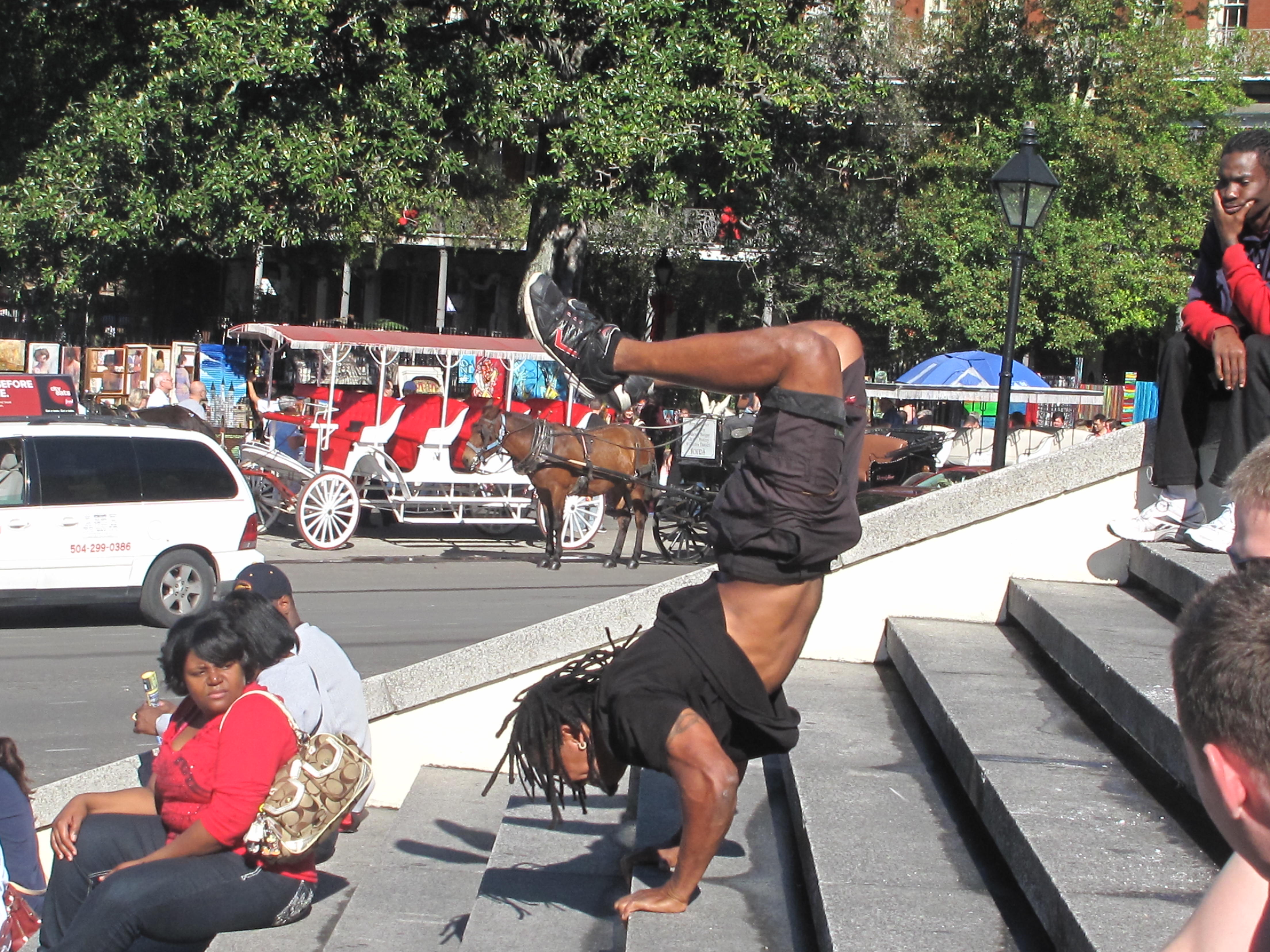 The next morning, we woke up and headed to Cafe Du Monde. We did some new clips for our video coming out soon, We got our Backpacks On. Grabbed some beignets and went and sat on the steps next door. To our surprise, we got treated to one of the coolest moments there, the Calypso Tumblers. These guys were awesome. Walking down the steps on their hands, incredible gymnast aerials, flips and such. We talked to them briefly and made our way to Jackson Square. Browsed around the French Quarter and headed to the St. Louis Cemetery where the Voodoo priestess is supposedly laid to rest. The kids got a kick out of the tombs and the history behind it all.